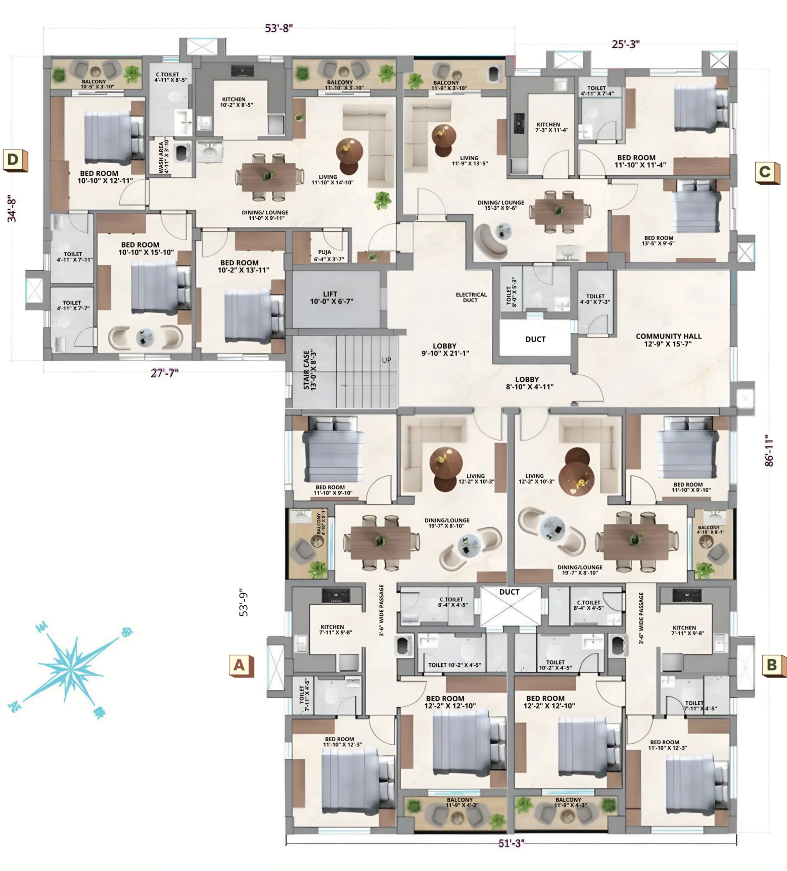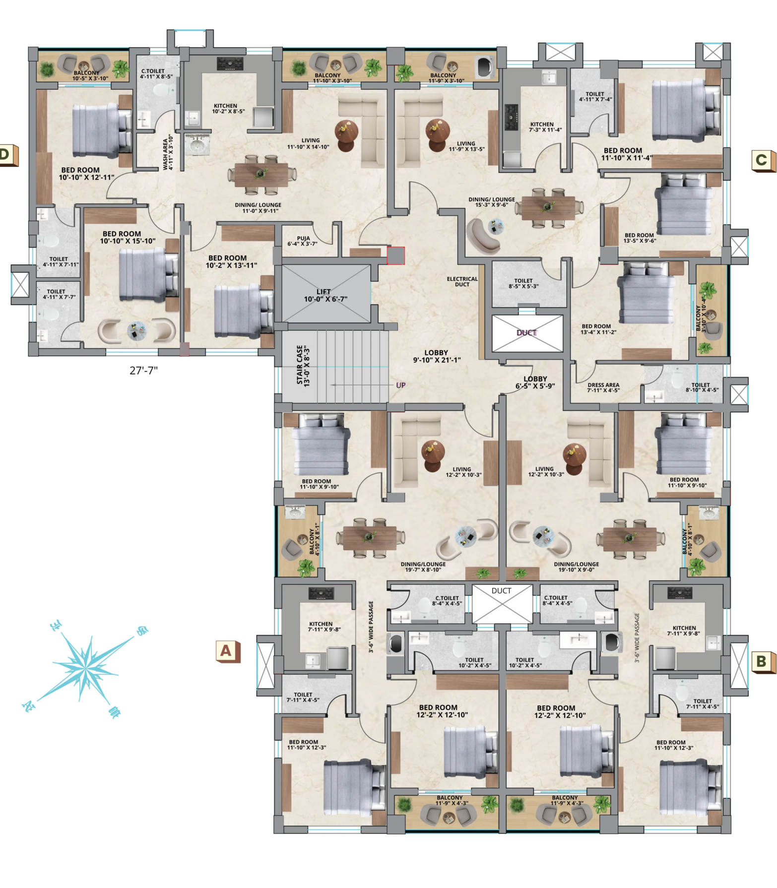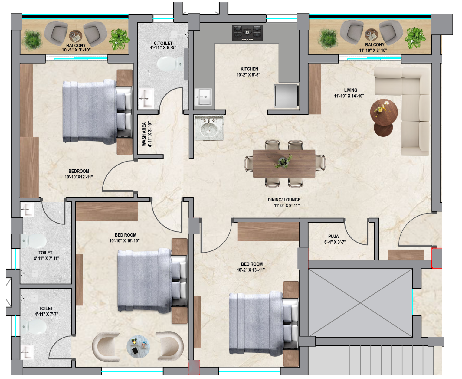 At Meadows located at Sundarpur near Patia Bhubaneswar, each floor consists of four flats each. Spacious and Elegant design curated for families looking for a flat in Patia Bhubaneswar.