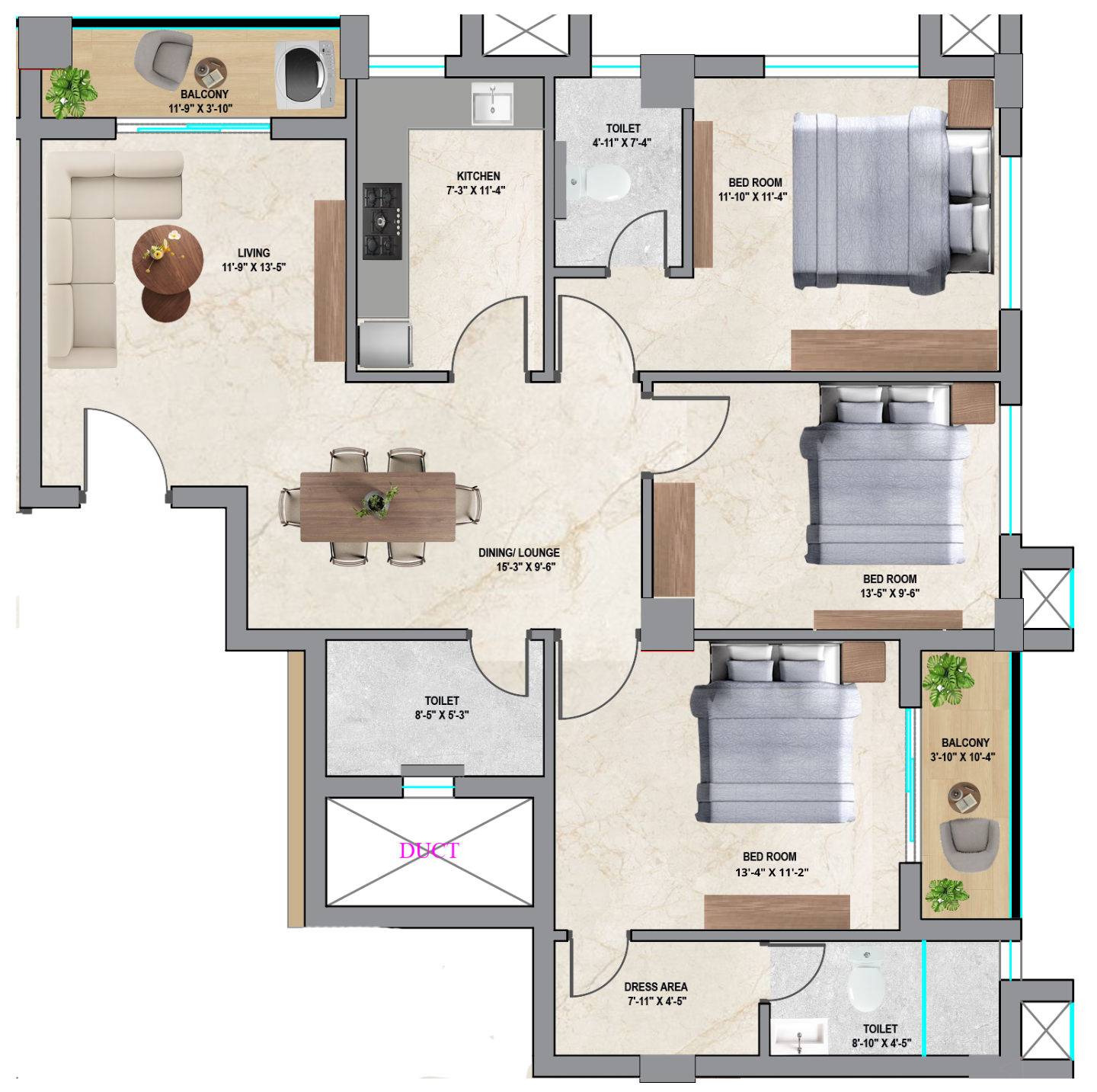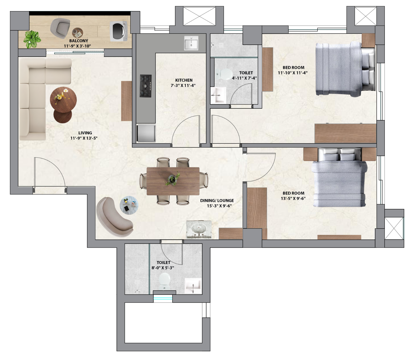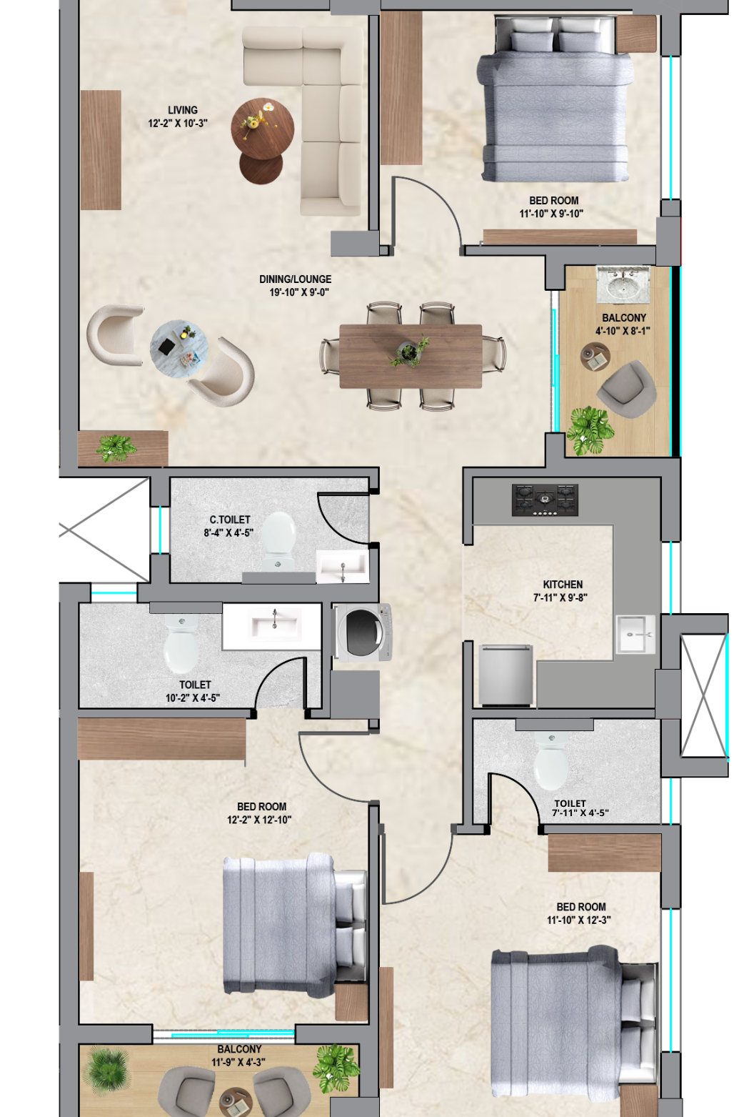 Carpet 840SQF Super Builtup 1312SQF